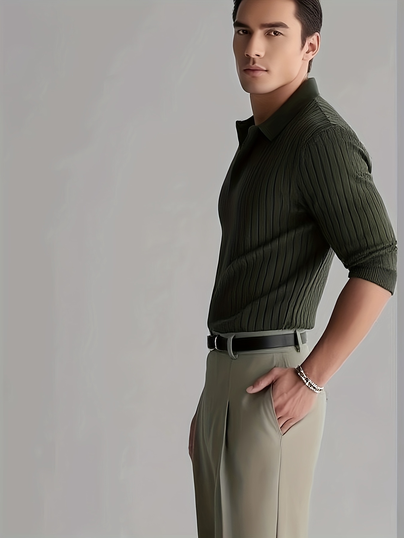 Der klassische Lapel-Kragen kombiniert mit dem feinen Rippstrick verleiht dir eine maskuline Eleganz, während die hochwertige Materialmischung aus 22 % Polyamid, 28 % Polyester und 50 % Viskose für ein weiches, angenehm dehnbares Tragegefühl sorgt. Dank des leichten Stretchs passt sich der Pullover perfekt an und bietet Komfort ohne Kompromisse.